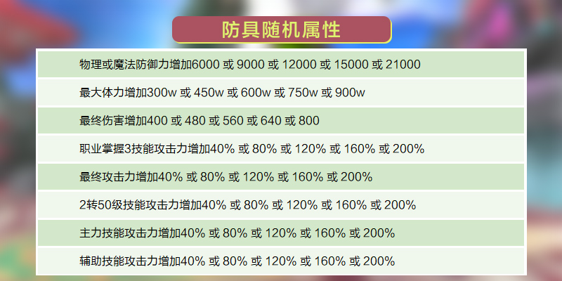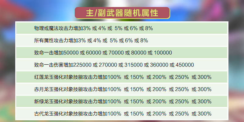 - 随机属性可使用“时间沙”道具来重新赋予