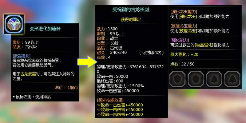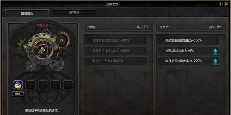 - 通过【方舟之力】系统,可以重赋古龙装备的随机属性