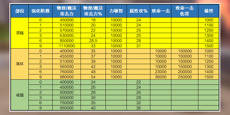 - 基本属性可通过强化来提升